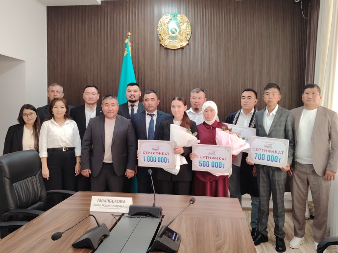 Алтын медаль иесі Айша Аршабекова — 1 000 000 тг, күміс медаль иеленген Жансұлтан Марат – 700 000 тг, қола жүлдегер Ханифа Қалманбай – 500 мың теңгелік ақшалай сертификатқа ие болды.