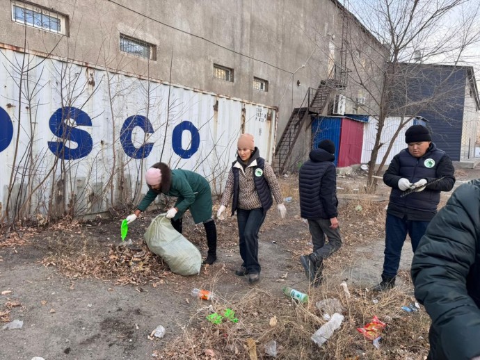 Акцияға қатысқан ерікті жастар тұрғындарды қоршаған ортаға қамқор болуға шақырып, #ТазаҚазақстан республикалық челленджін қолдады.