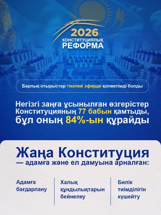 Қазақстанда жүзеге асырылып жатқан конституциялық реформа ел дамуы жолындағы маңызды бетбұрыс ретінде бағалануда. Ұсынылған өзгерістер Конституцияның 77 бабын қамтып, оның 84 пайызын құрады. Реформаның басты ерекшелігі – ашықтық қағидаты мен қоғамның белсенді қатысуы. Бұл бағытта барлық отырыстар тікелей эфирде көрсетіліп, азаматтардың пікірін ескеруге мүмкіндік берілді.